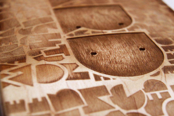 design made in illustrator and then laser cut on the skateboard deck