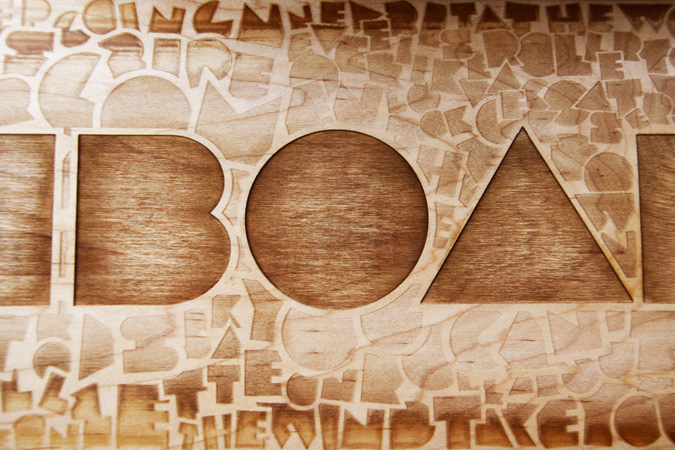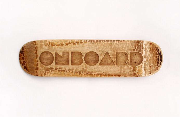 laser cut typography on skateboard deck